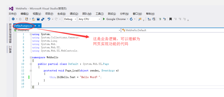 在利用ASP.NET 4.5设计Web应用程序时,不可避免地要学会并掌握页面结构、指令、事件以及应用程序文件夹、Global.asax以及程序的编译。下面继续以“Hello World”为例讲解以上的知识点。