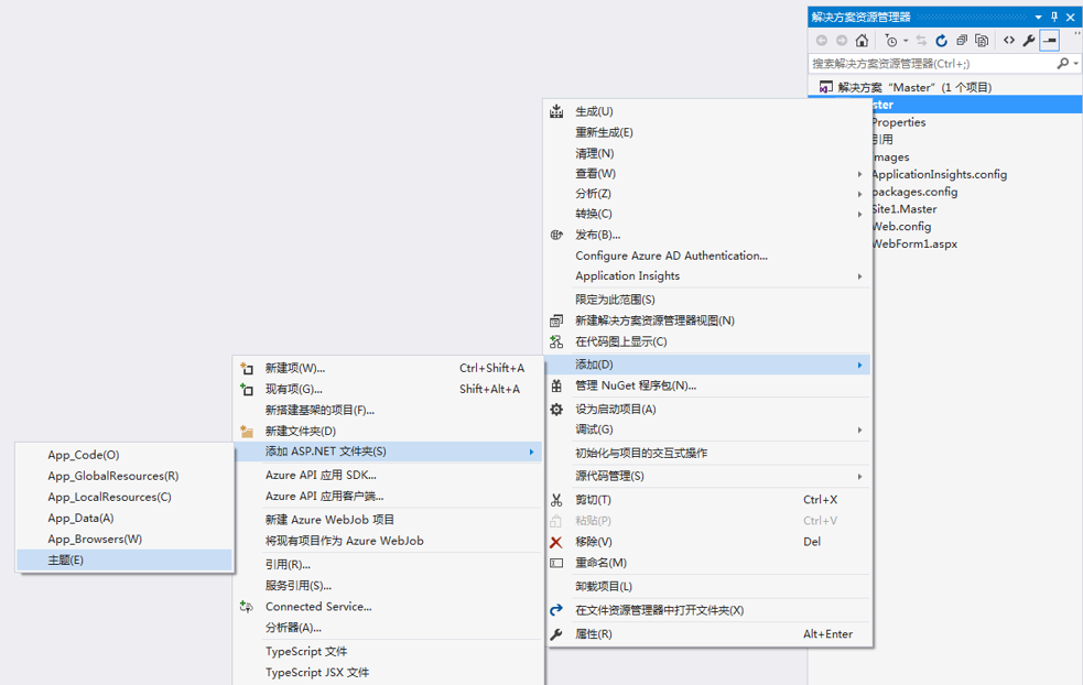 (1)选中项目右击,在弹出的快捷菜单中选择【添加】→【添加ASP.NET文件夹】→【主题】命令,如图1-2所示。