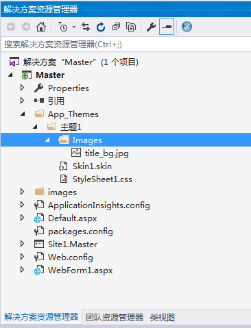 (6)在主题中使用图像。许多控件都使用图像创建更好的可视化外观,要把图像统一到使用主题的服务器控件中,首先在【主题1】的Themes文件夹下创建一个Images文件夹,放一张图片,如图1-7所示。
