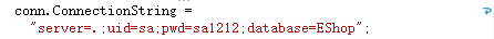 SqlConnection conn=new SqlConnection("server=localhost;database=pubs;uid=sa;pwd=;");