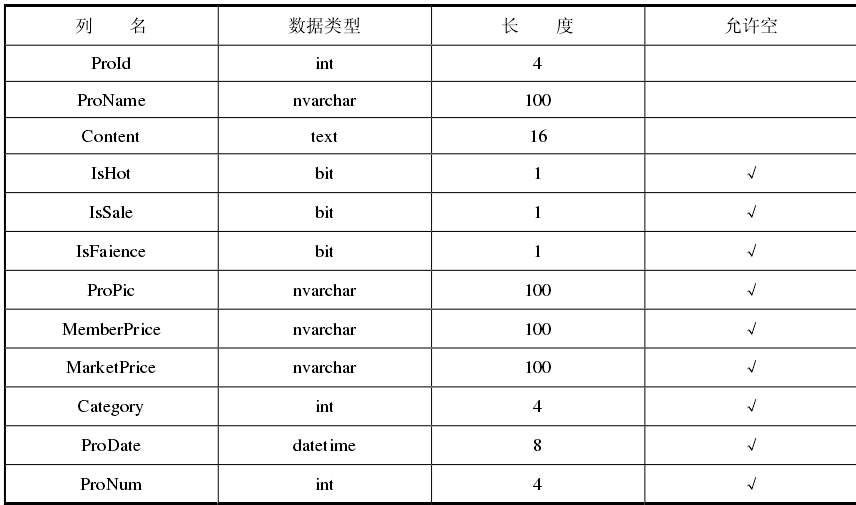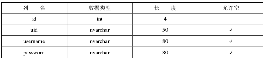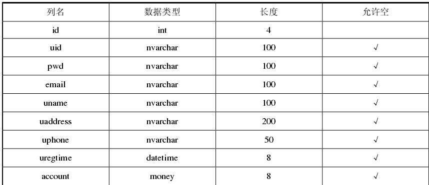 本窗体用于接收用户输入的数据。但是,这样的窗体在用户将数据保存起来之前,是没有多少用处的,接下来就是现在将要完成的任务,当单击【注册】按钮的时候执行代码将数据保存到数据库中。本项目使用的数据库是SQL Server数据库。数据库表的结构见表1-1~表1-4。
