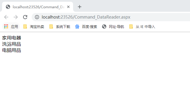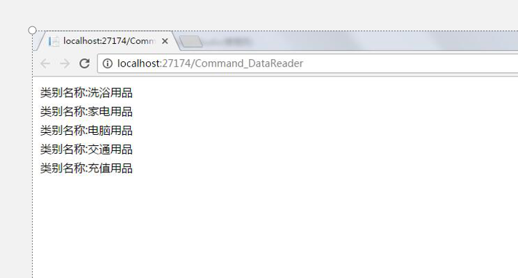 制作一个Web窗体,在窗体中显示所有商品分类的名称。该页面显示数据使用了Command对象的DataReader方法。