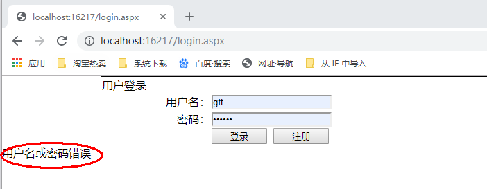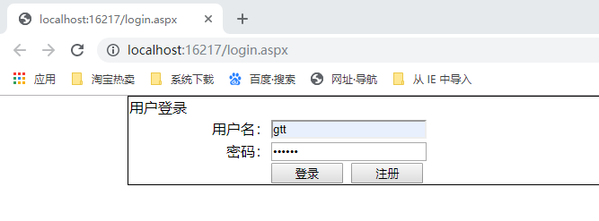 将Login.aspx设为起始页,启动项目。输入用户名和密码后,单击登录按钮,将执行按钮的Click事件。