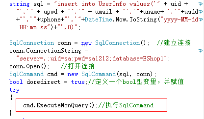 (1)ExecuteNonQuery():可以执行例如Transact_SQL的Insert、Delete、Update命令以及Set命令,并返回受命令影响的行数。