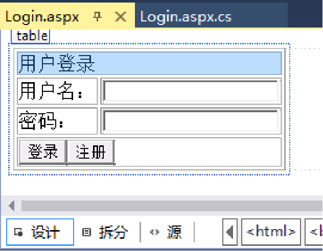 (1)打开Login.aspx页面,双击【登录】按钮转向后台编码页面。