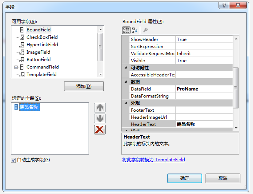 (4)单击GridView的Columns属性,弹出如下图所示的对话框。