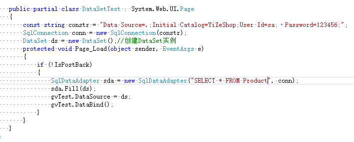 (1)在网站中建立一个名为DataSetTest.aspx的页面。