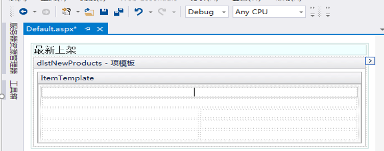 (3)在窗体的设计视图下将DataList控件从工具箱中拖到布局表格的第二行中,更改ID为dlstNewProducts,设置RepeatColumns为5。此时效果如图6-2所示。