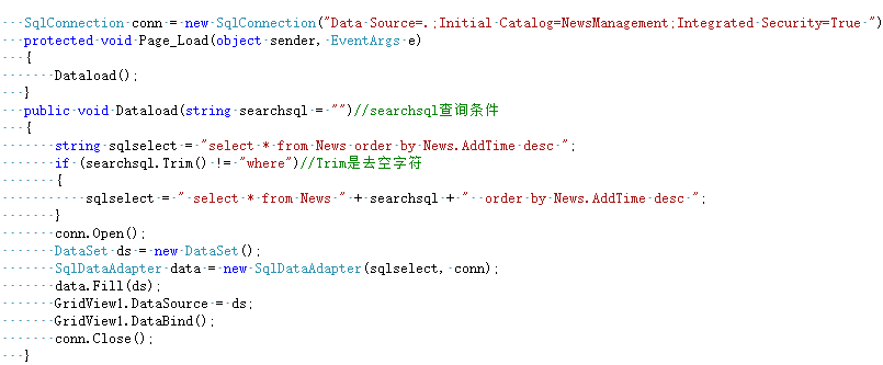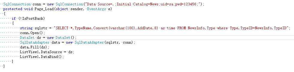 (5)在后台编码,创建DataLoad()函数,用于加载数据列表,代码如下所示: