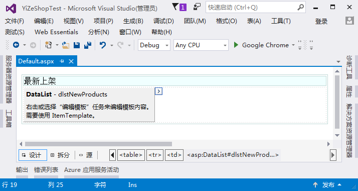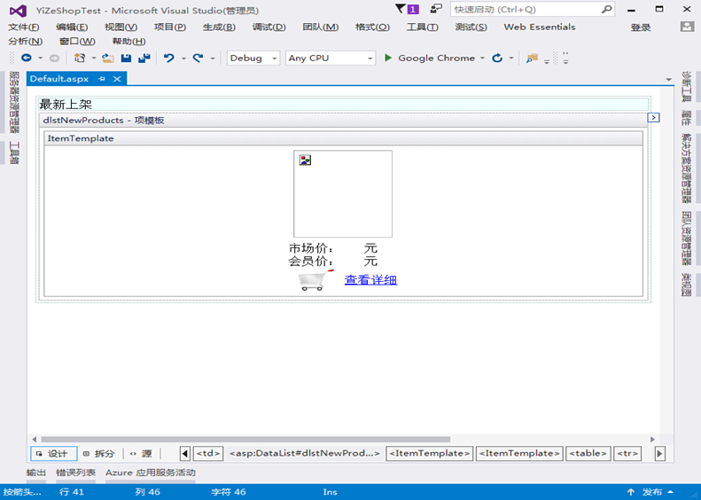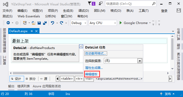 (1)在YiZeShop中,新建了一个名为Default.aspx的Web窗体。