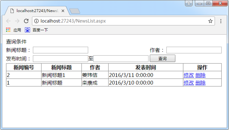 (1)在NewsManagement项目下新建新建Web窗体NewsList.aspx。
