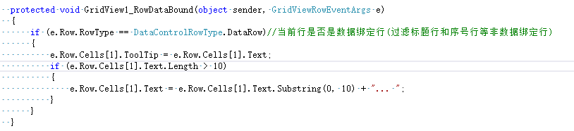 (12)添加GridView1的RowDataBound事件,并编写代码实现标题截取功能。
