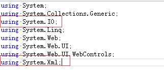 (2)双击页面进入代码视图,先判断XML文件是否存在,如果不存在,将重新创建一个新的XML文件(需要引用操作XML和文件的命名空间)。