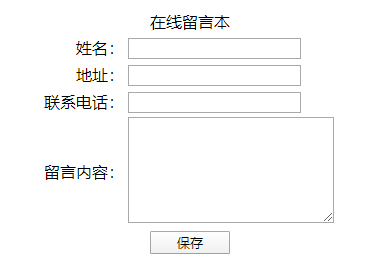 用户输入姓名、地址、联系电话和留言内容后,单击【保存】按钮,可以将信息写入XML文件中。运行效果如下: