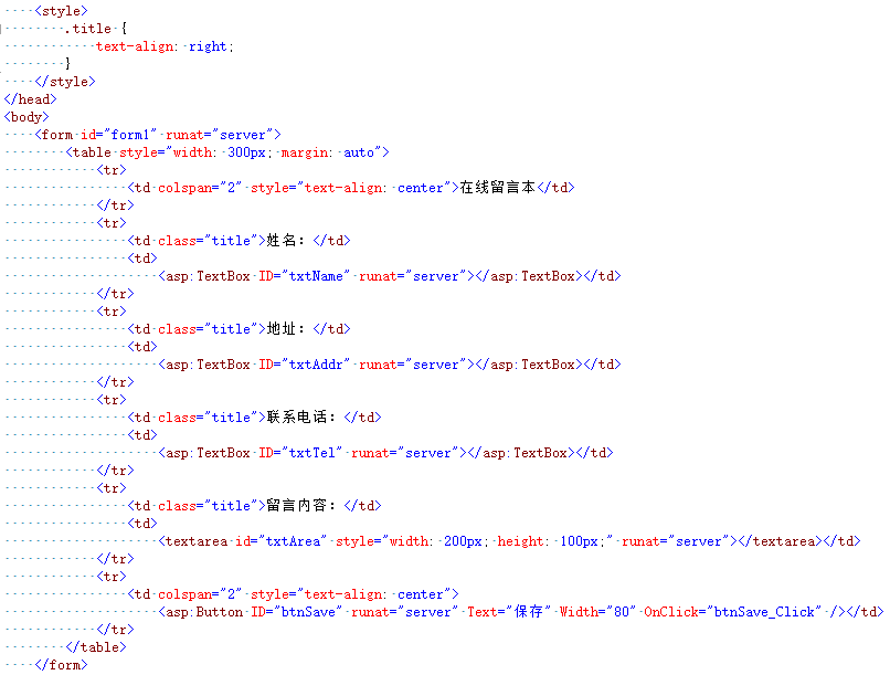 (3)在按钮btnSave_Click事件写添加代码,写入XML文件。创建写入XML文件的方法,参数包括XML文件的路径、姓名、地址、电话和留言内容。