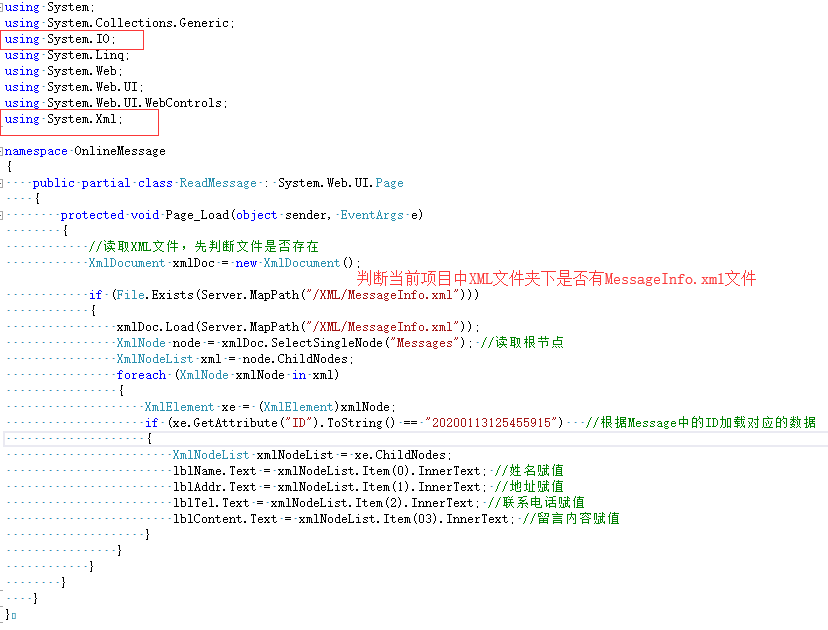 (1)创建读取XML文件的方法,在项目OnlineMessage中新建ReadMessage页面。