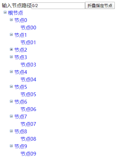 (2)对指定节点进行操作。在上面的操作中实现对TreeView进行折叠和展开,那么如何实现对指定节点进行展开和折叠呢?可以通过TreeView控件中有一个FindNode()方法来实现。程序运行效果如下图所示。