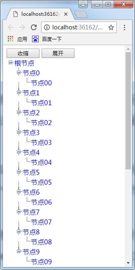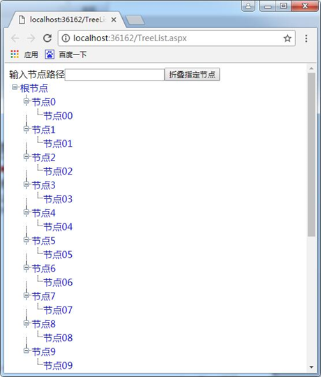通过编程控制TreeView控件的展开与折叠,具体效果如下图所示。在以上的操作中,主要通过配置XML数据源的方式来配置TreeView控件,在实际应用过程中,可能要通过程序代码来控制。