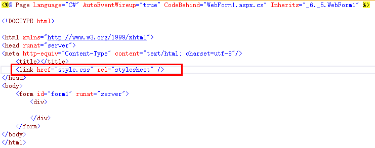 在页面的前台Html代码中链接Style.css文件