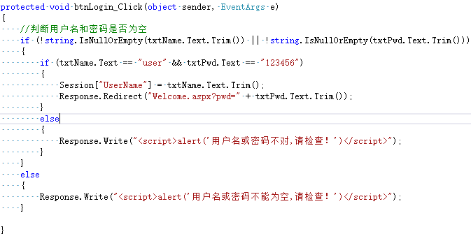 (2)在Login.aspx.CS文件的btnLogin_Click中填写代码。