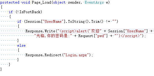 (3)创建Welcome.aspx,并在后置代码的Page_Load事件处理程序中添加代码。