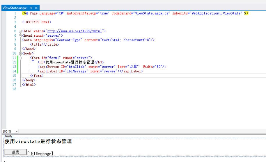 ②添加一个Label控件,拖动到页面中的适当位置,并把Label控件的ID属性设置为message,Text属性设置为空。