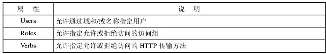 <allow>和<deny>节点不仅可以操作特定的用户,还可以操作组。这两个元素支持表2-2中的属性。