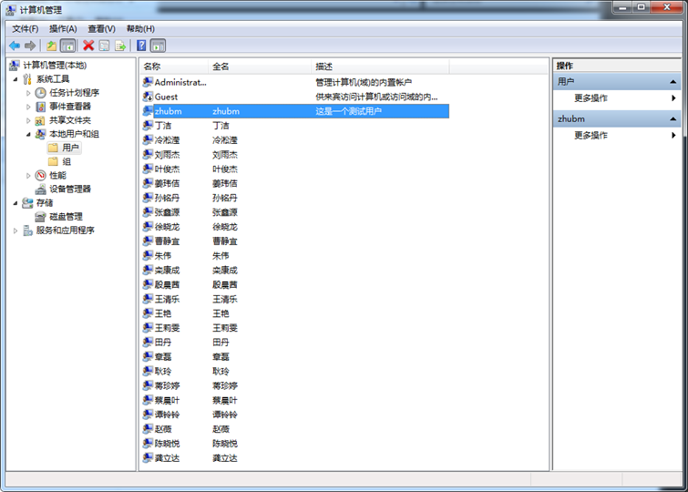 ⑥给用户指定名称、密码和描述(说明这是一个测试用户)。这个例子把用户命名为zhubm。