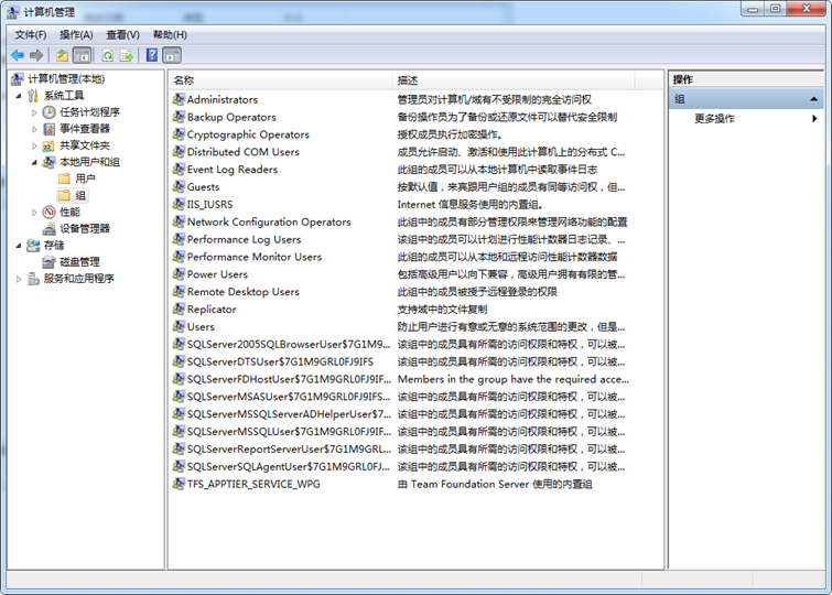 (1)打开计算机管理实用程序(选择【开始】→【控件面板】→【管理工具】→【计算机管理】命令),访问在服务器上定义的组列表。单击【计算机管理】实用程序中的【组】文件夹,就会显示组的列表,如图2-6所示。