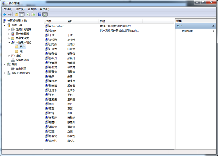 ⑧单击【创建】按钮,就创建了测试用户,它会显示在【计算机管理】实用程序的【用户】文件夹中,如图2-3所示。