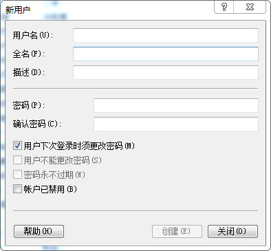 ⑤右击【用户】文件夹,在弹出的快捷菜单中选择【新用户】命令、弹出【新用户】对话框,如图2-2所示。