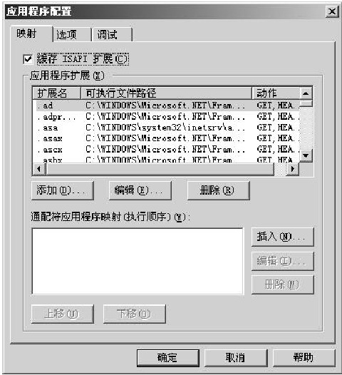 在ASP.NET中可以使用许多类型的文件,这些文件用其扩展名定义。例如,.aspx是一般的ASP.NET页面,.asmx是ASP.NET Web服务文件的扩展名。这些文件都是由IIS映射给ASP.NET DLL的,即aspnet_isapi.dll。