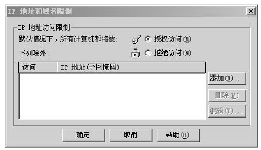 (2)单击【IP地址和域名限制】选项区域中的【编辑】按钮,会打开一个对话框,如图4-2所示。