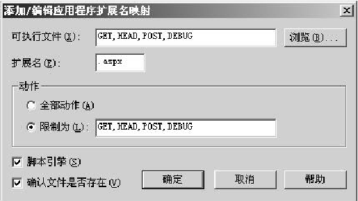 填写完成后单击【确定】按钮。现在网站中扩展名为“.aspx”的网页就可以访问了。