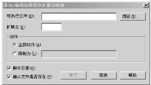 (3)现在来恢复可以访问网站中扩展名为“.aspx”的页面:单击【应用程序扩展】对话框中的【添加】按钮,弹出对话框如图4-6所示。