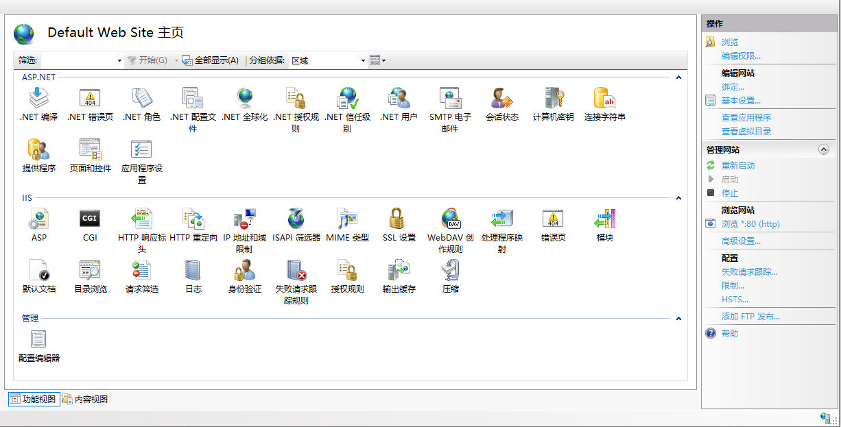 IIS7及IIS7以上的界面如下