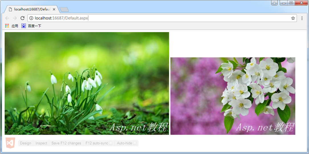 使用HttpHandler实现对站点下所有图片加水印“Asp.net教程”。运行效果如下图所示。