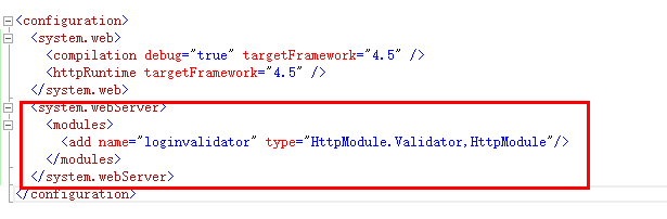 (4)注册模块。在Web.Config中<system.web>节点之间添加代码。
