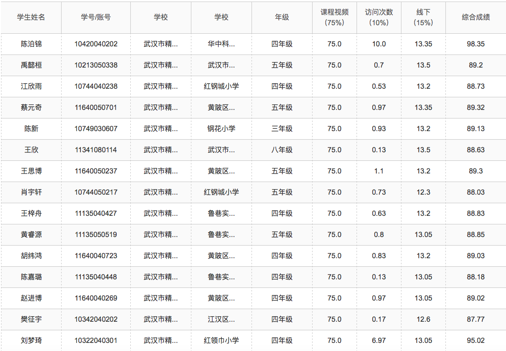根据统计得知,这门课程总访问数10539次,报名人数1455个,参与学习人数1301,数据统计后合格(60分)人数242人,优秀(88分)人数54人。