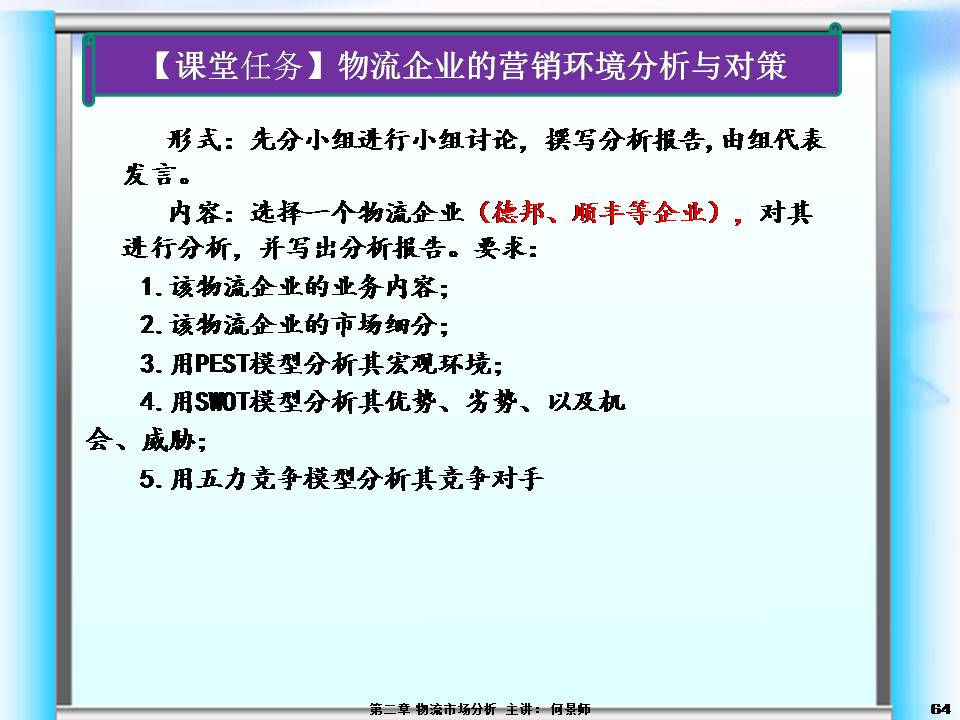 • 2.2 任务1  物流市场营销环境分析