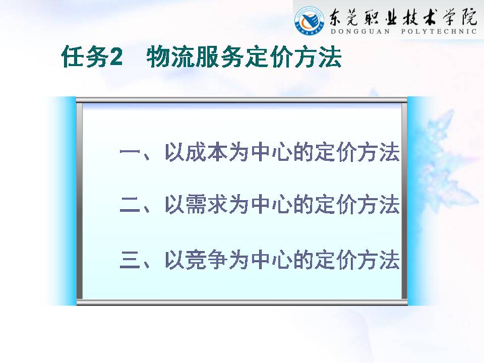 • 7.3 任务2  物流企业分销渠道     的设计与管理