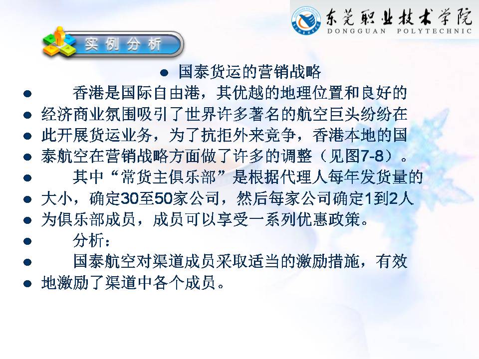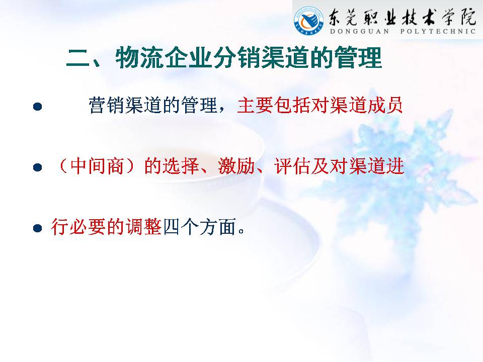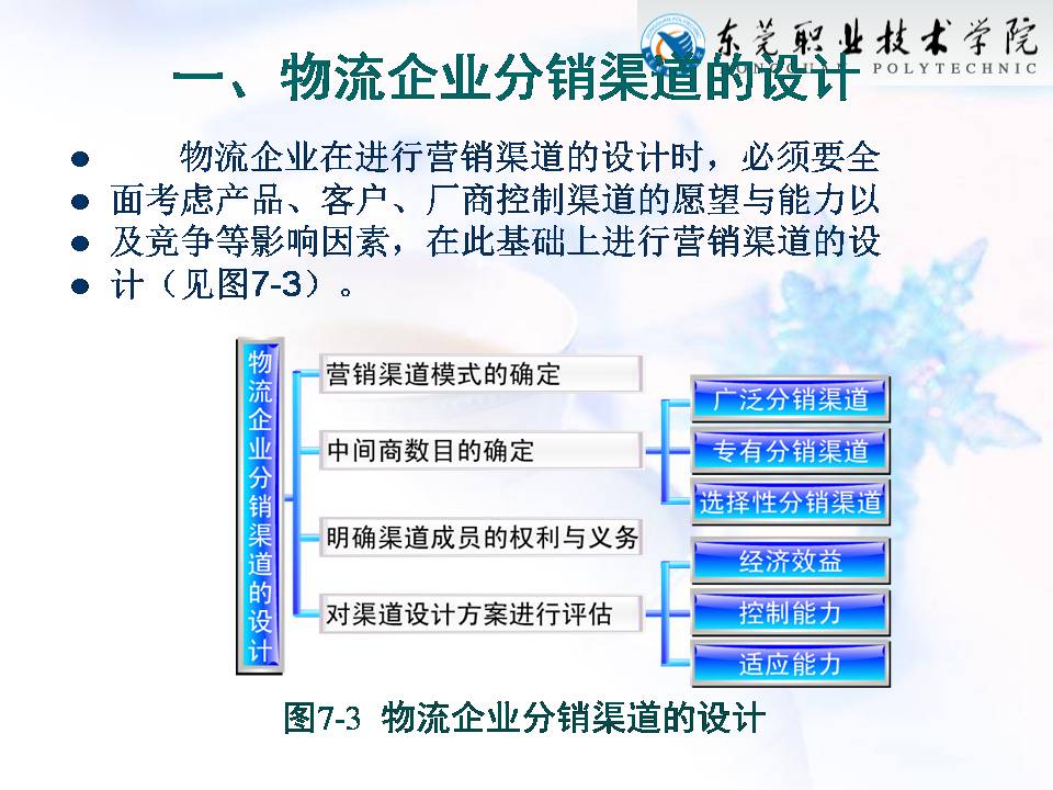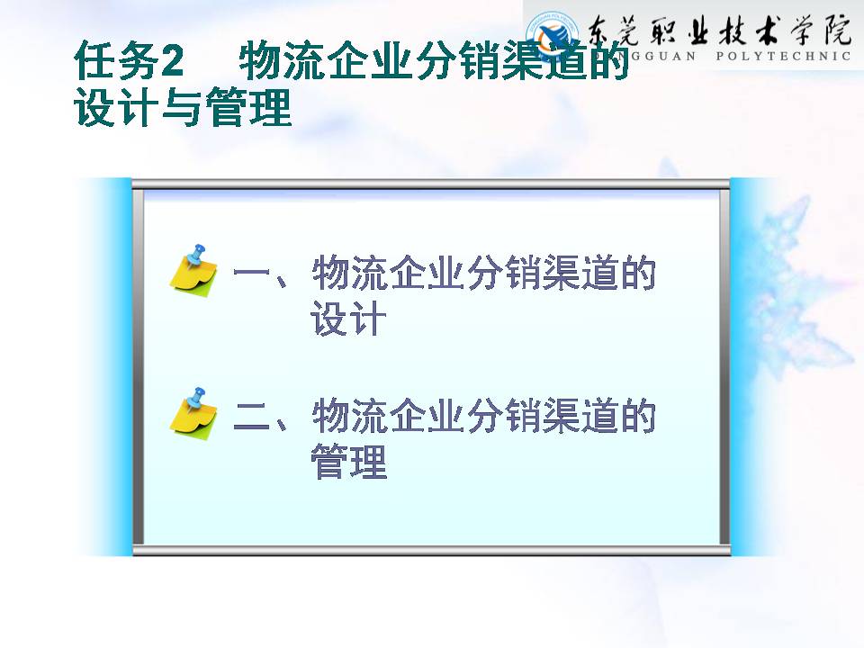 • 7.3 任务2  物流企业分销渠道     的设计与管理