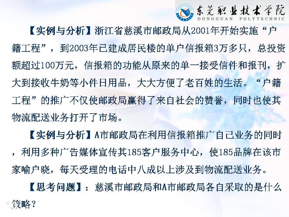 • 4.5 任务4  物流市场营销组合策略