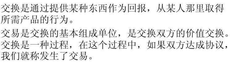 在交换双方中,如果一方比另一方更主动、更积极地寻求交换,那么前者称为市场营销者,后者称为潜在客户。所谓市场营销者,就是指希望从别人那里取得资源并愿意以某种有价之物作为交换的人。市场营销者可以是卖主,也可以是买主。在另一种场合,买卖双方都在积极寻求交换,那么,就把双方都称为市场营销者,并把这种情况称为相互市场营销。