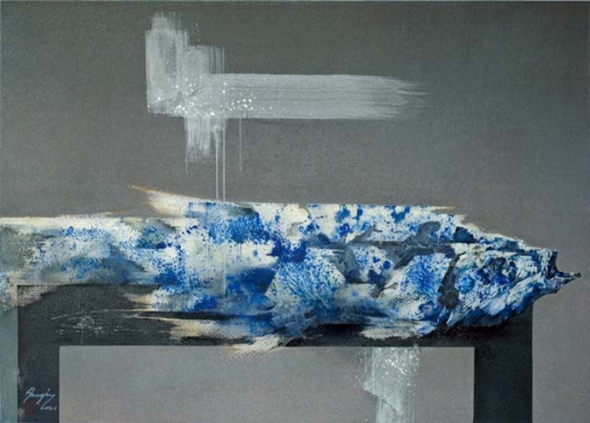 白色和普蓝色调和后,产生的浅蓝色虽然均匀、柔和,却失去了水彩颜色的透明与润泽感。