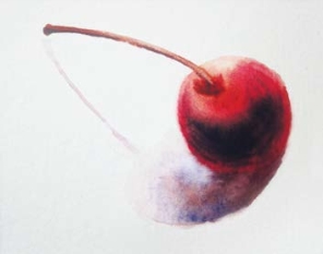 直接用纯黑色画樱桃的深色部分,色彩的透明感减弱了。