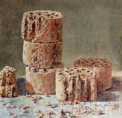 在宣纸上作水彩画,既可以表现出水彩画水色交融的效果,也可以通过一些特殊技巧,表现出对象的特殊肌理和厚重感。