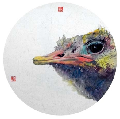 在宣纸上,通过运用做底、喷洒矾水、提亮等一些特殊的材料和技巧,使画面在温和柔美之中又呈现出了精致细微的肌理美和厚重感。
