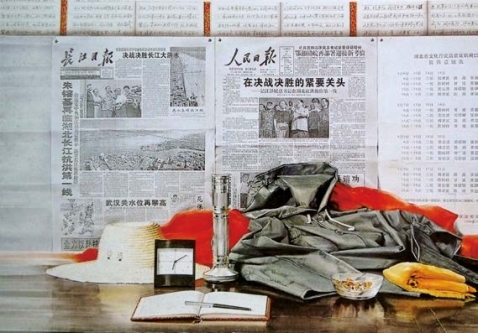 有时作画,我们为了追求一种新奇感和逼真的画面效果,可以将书刊、报纸等印刷品上的文字或图片剪贴下来粘贴在画面的局部,使作品给观者留下非同一般的视觉感受。