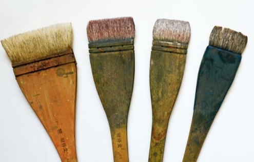有的画家也使用水粉笔、扇形笔、油画笔等。总之,依据表现作品的需要及画家的个人爱好,选用不同特性的画笔,往往在作画时能够得心应手,使作品更具有表现力。